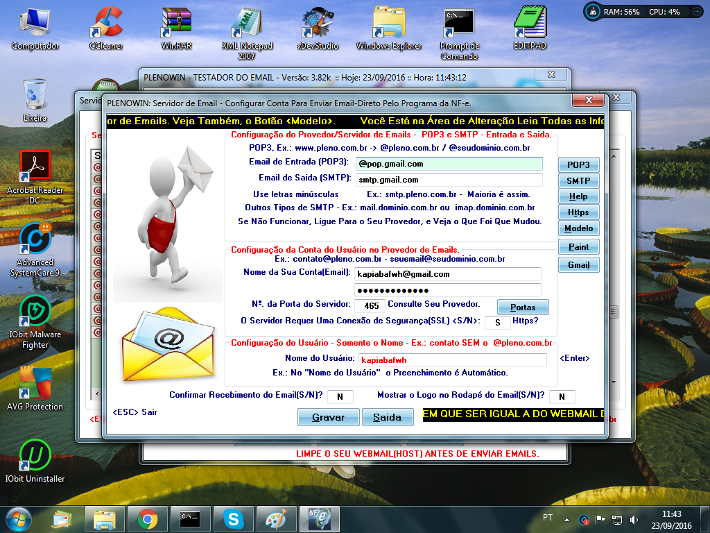 'Mensagem: ', oErroMail:Description}, 'Erro configurando e-mail!')