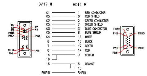 1) Um que não funciona, seria pra DVI-I, o que é esquisito, já que os pinos analógicos pra VGA precisam de outros pinos não existentes nele