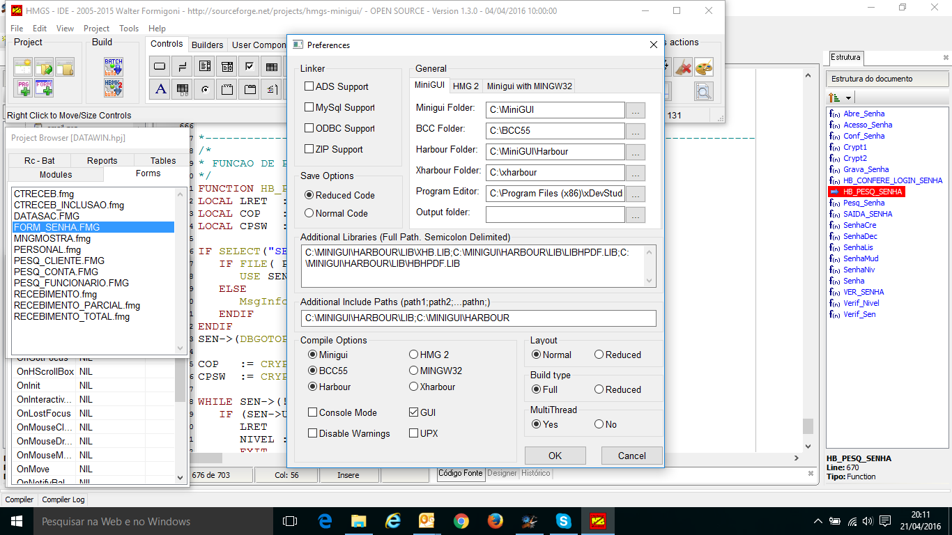 Compilar Incremental com A IDE da Minigui Extends