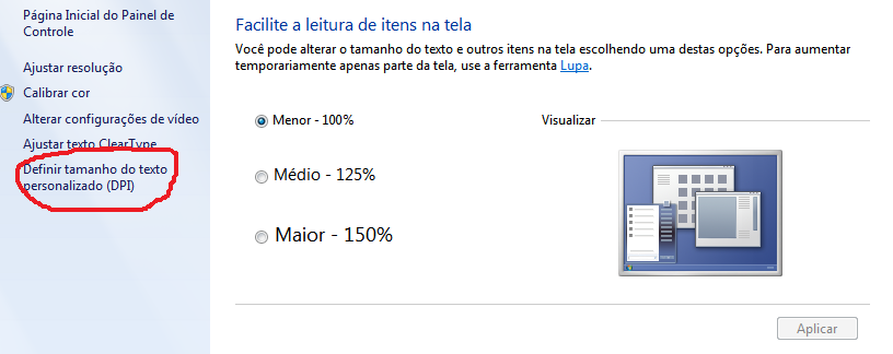 No W7, se usar ampliação, ela vale pra TODOS os monitores, então nos outros monitores fica enorme.
