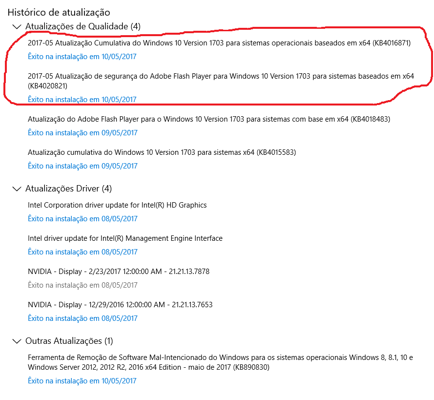 Mas só funcionaram hoje, depois de atualizações e de trocar o grupo de trabalho.