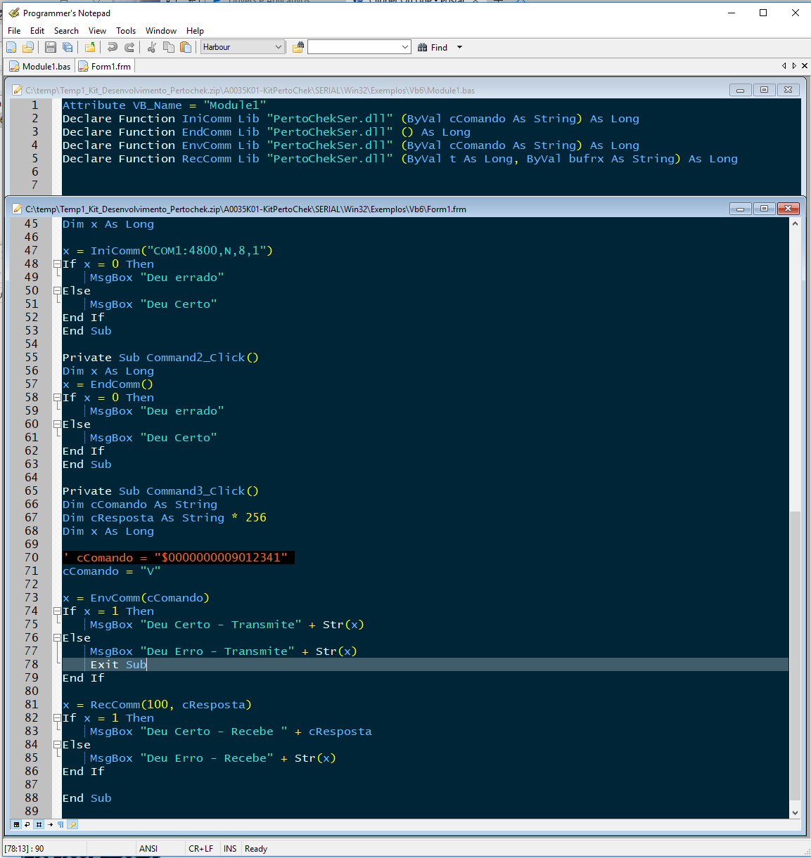 De qualquer forma, mostra que falta o SerialBusy() e IniComm2() no VB6.