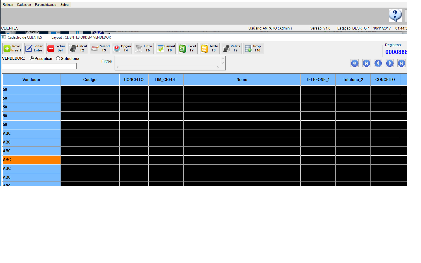 *CRIATABSBROW:SetColor( { 2 }, { { || IIF( VENDEDOR = "50",COR_VERMELHA,;