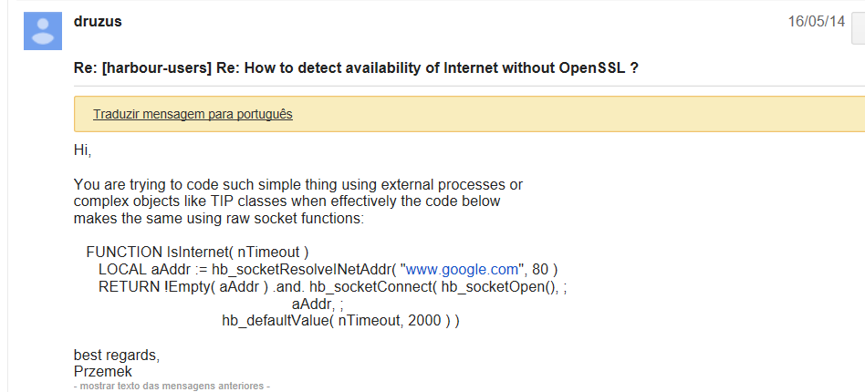 Alert(IIF(TemInternet(),"Conectado","Não Conectado"))