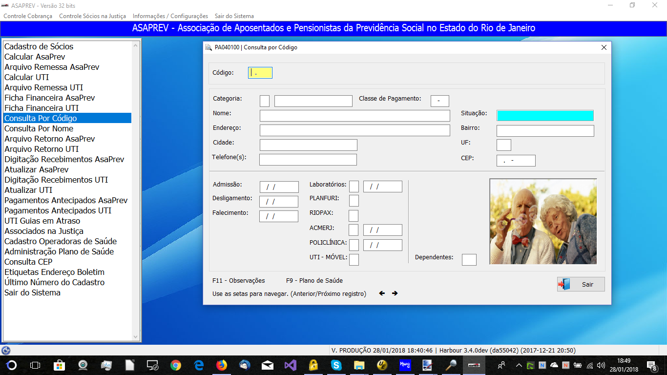 Cadastro com fotos e rotina pronta para captura da foto via webcam