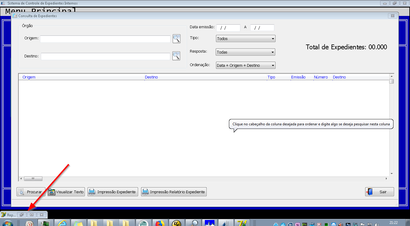 Essa janela é um relatório feito em delphi, quando minimizado ao clicar no botão Impressão Relatório Expediente se estiver minimizado quero que a tela seja maximizada.
