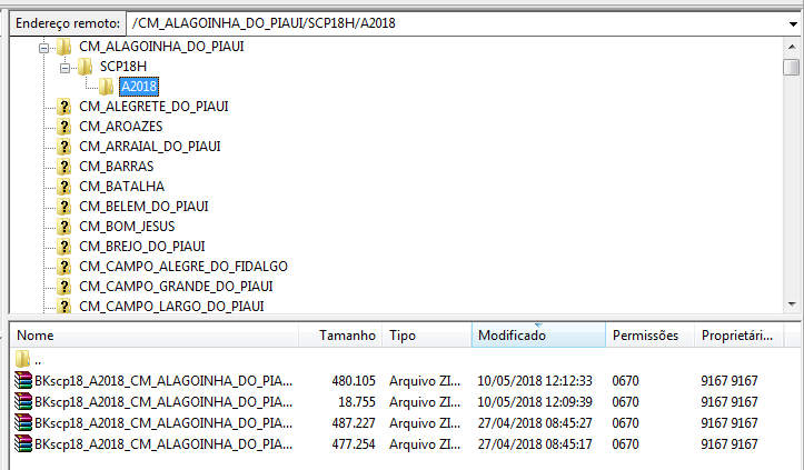 Tela FileZilla - pasta Backup