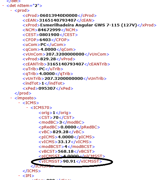 Na nota de entrada tá assim: Que cálculo foi feito para chegar no valor de 90,91 de ST?