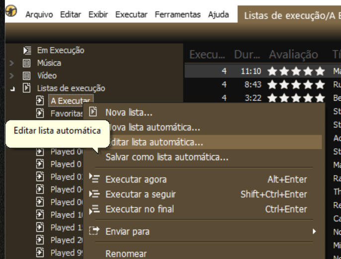 O MediaMonkey tem opção de criar lista automática
