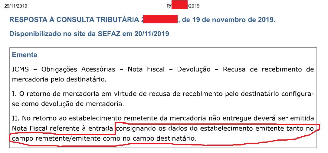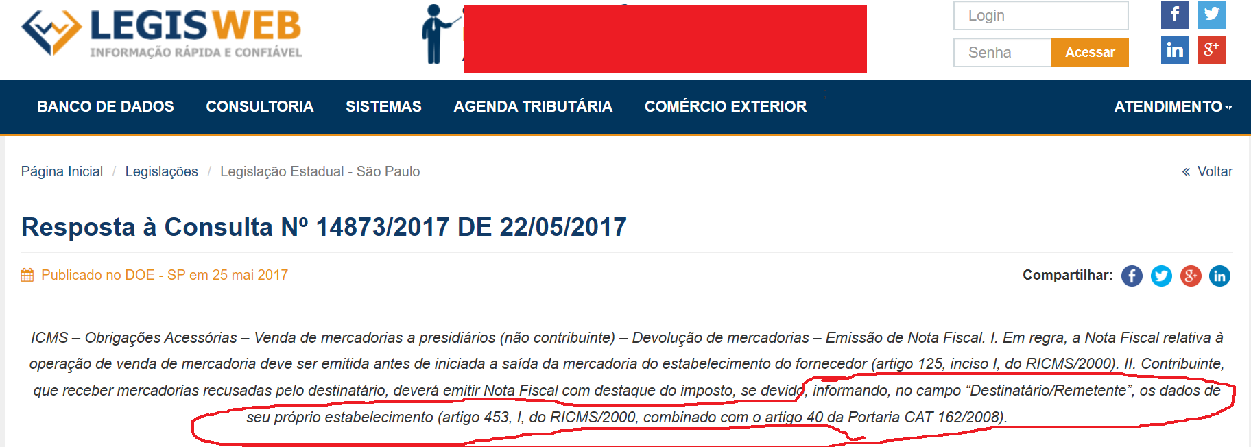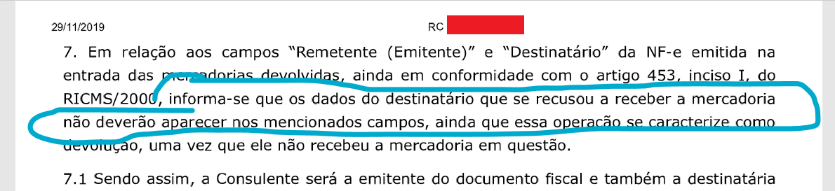 Aonde esse artigo diz que não é pra aparecer os dados do destinatário que recusou a mercadoria?????