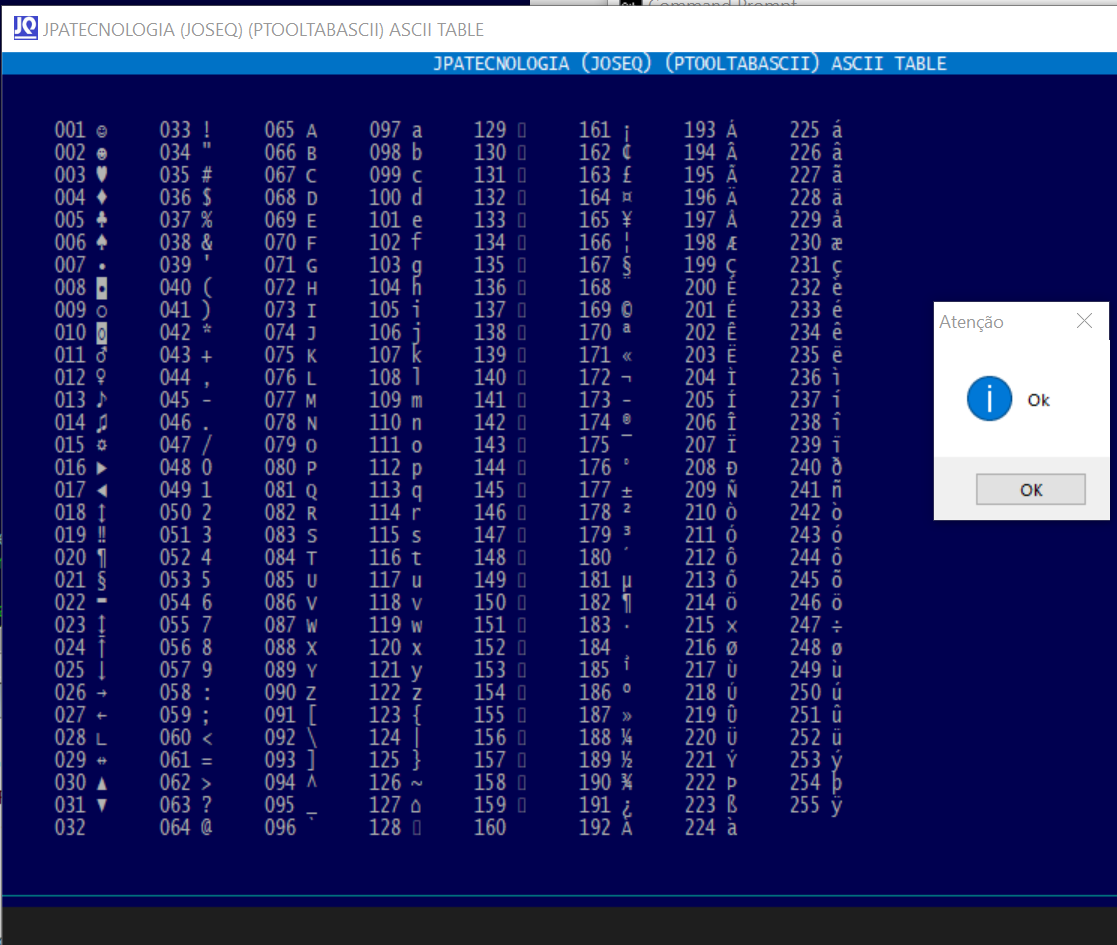 @ j,x SAY RIGHT( STR( i ), 3 ) + SPACE(1) + CHR( i++ )