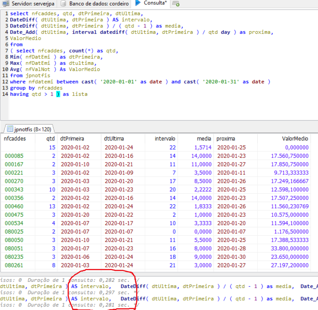 Alguem tem alguma sugestao? Pois nao consigo desenvolver um sql que me informe em qtos dias medios o cliente solicita sua compra e se provavelmente esta chegando no proximo dia de compra dele?