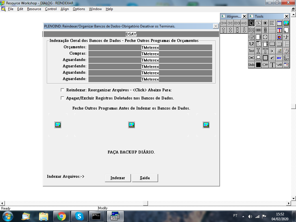 E a tela é de indexação de DBFs....