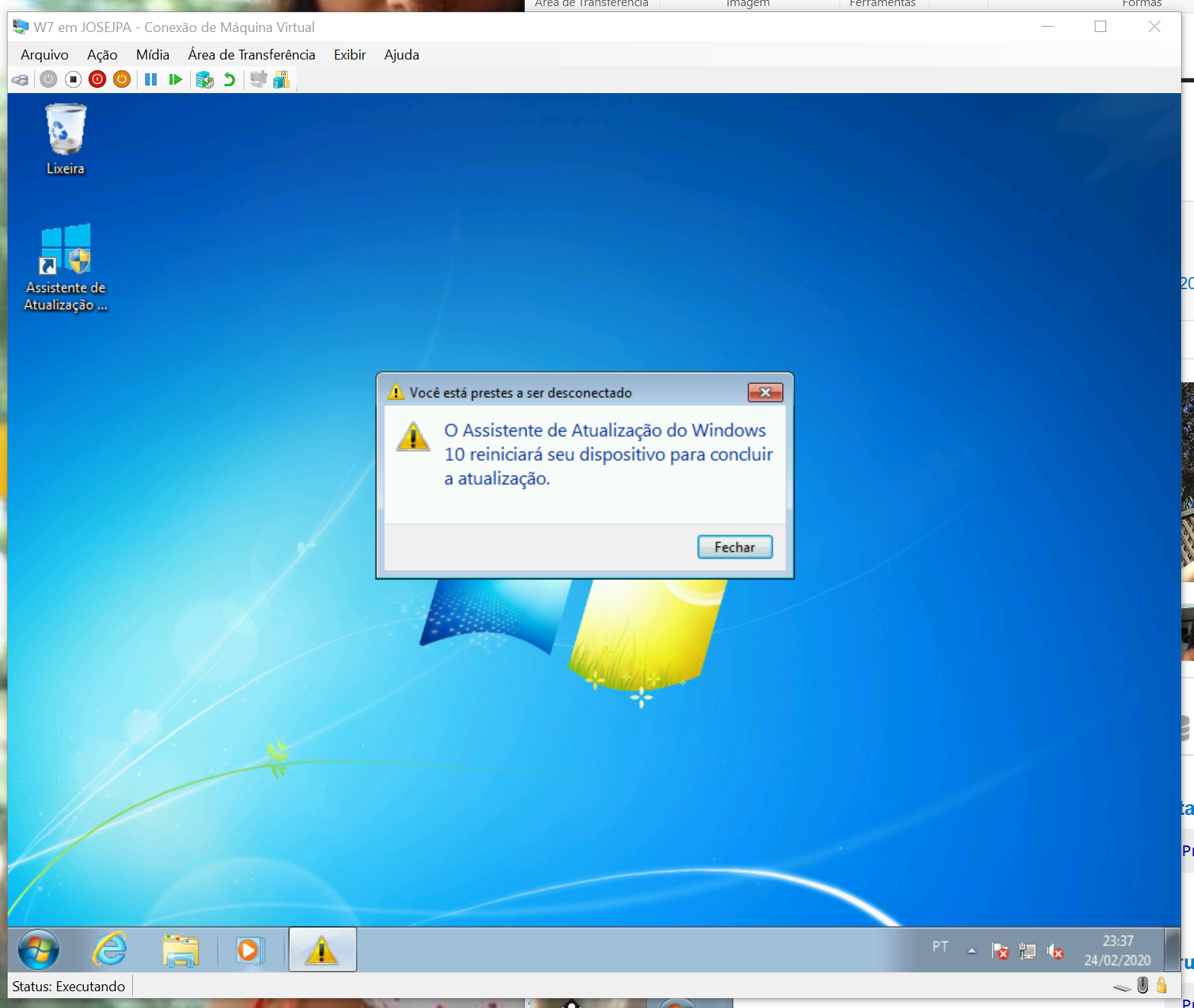 É um Windows NOVO na máquina virtual.... e não configurei nada....
