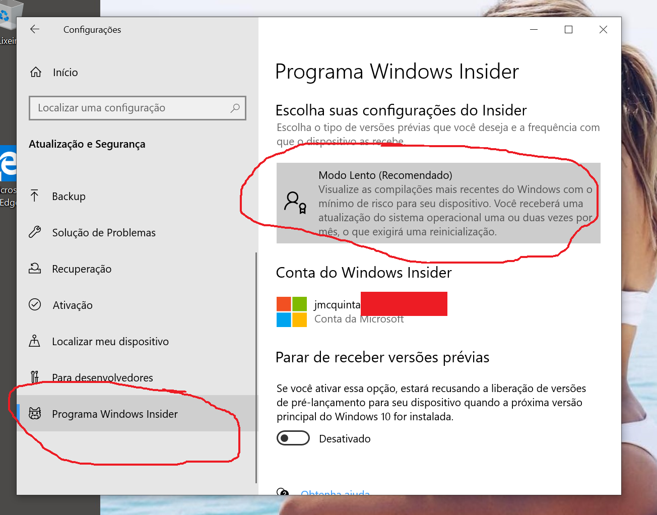 Também tem opção de só receber versão RC, aquelas que teoricamente estão prontas pra usuário final.