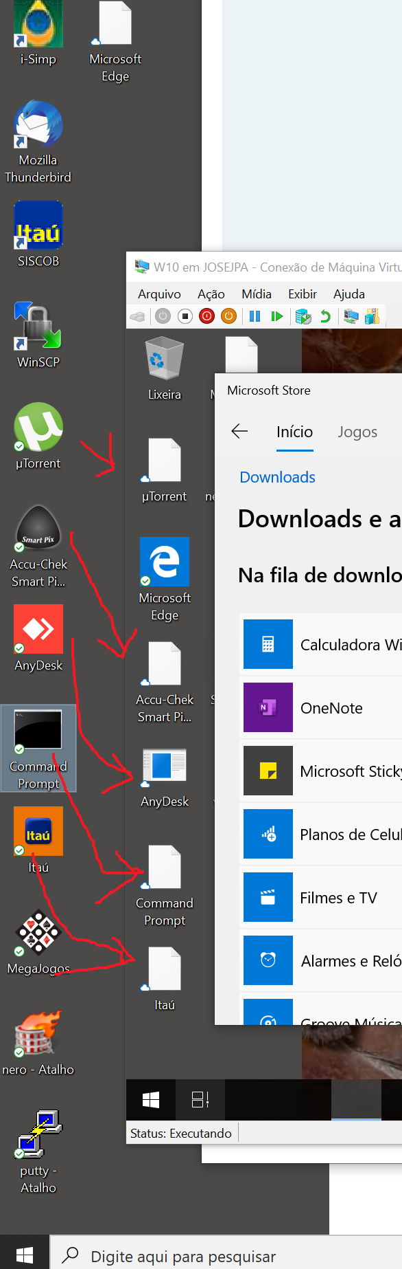 Meus atalhos apareceram na virtual.