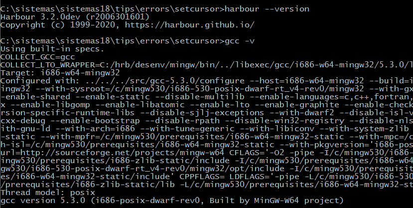 Com Harbour não funciona. No Harbour o setcursor não funciona dentro de gets, testei no linux também. Agora quando saimos do programa o cursor do Console do windows "some".