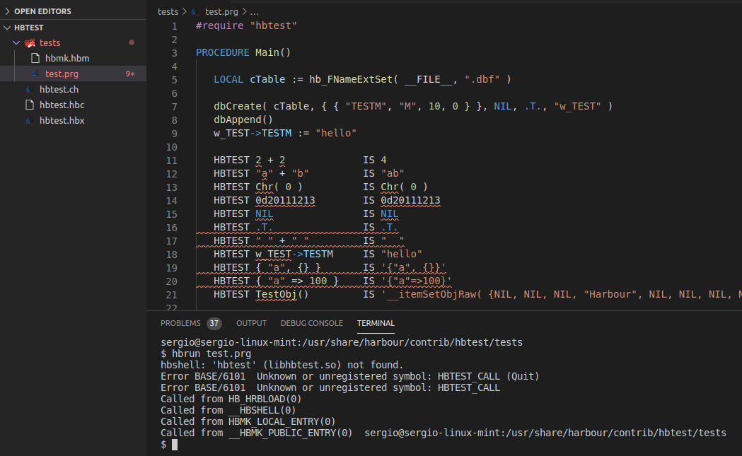 Nesta pasta "/harbour/contrib/hbtest/", eles criaram um comando específico para testes.