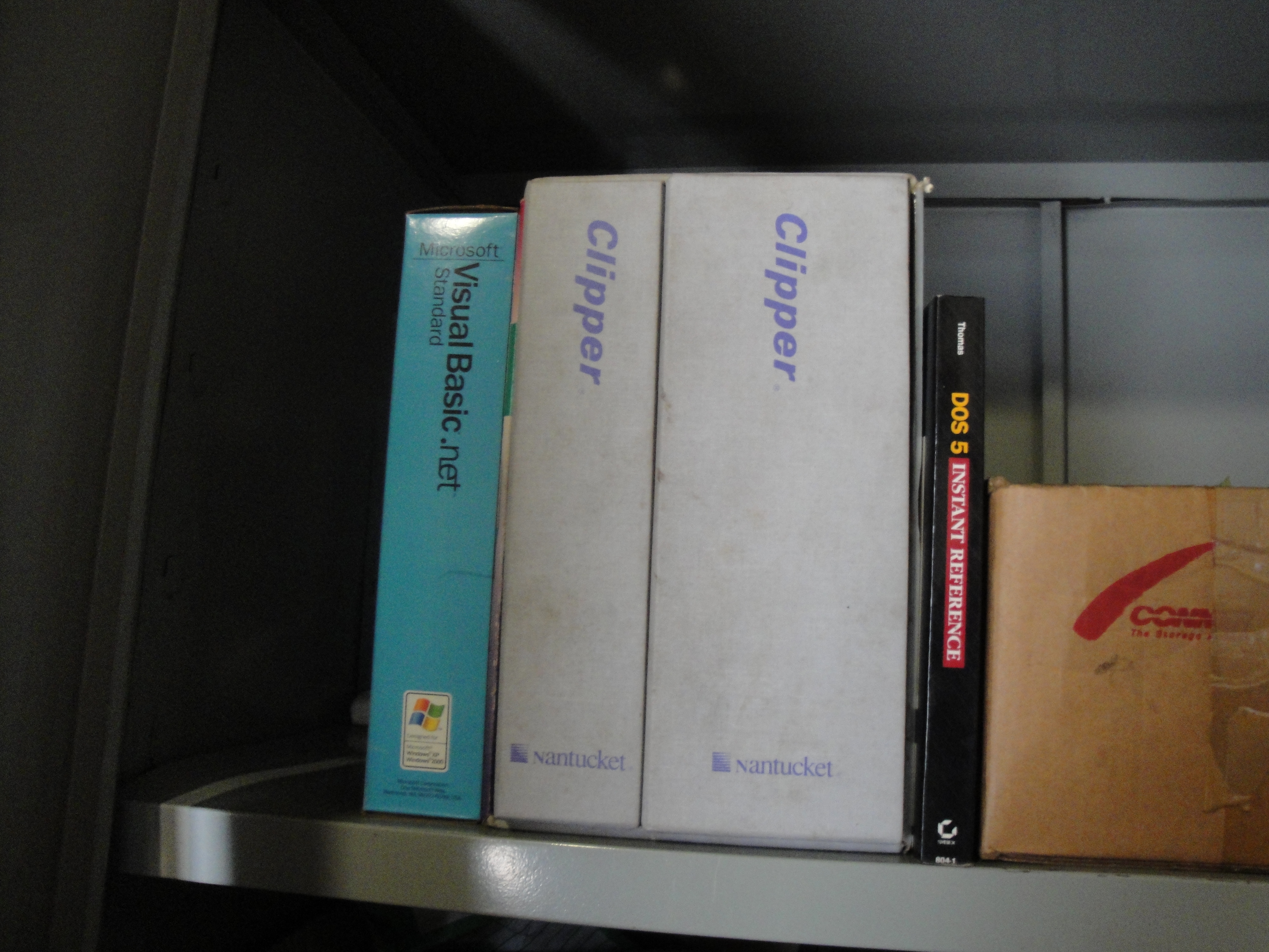 O Clipper, o RTLink Plus está dentro da caixa do Clipper, um manual do DOS 5.0 e o VB.NET pra dar direito de uso do VB6 - outro sobrevivente igual ao Clipper.