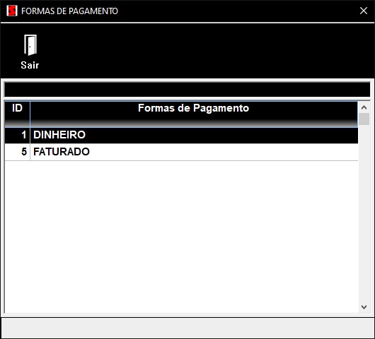 tela com as formas de pagamento ativas para consulta