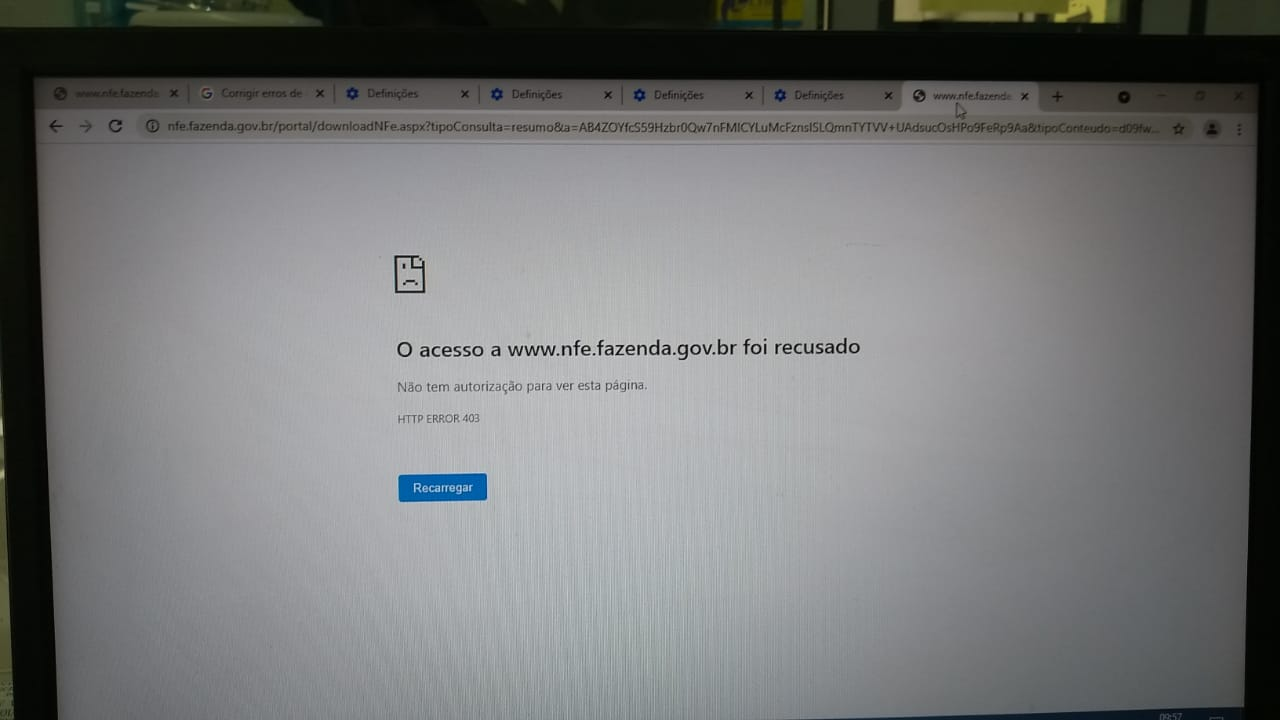 Nem o Chrome e o Edge baixa as NFe's retorna um erro: