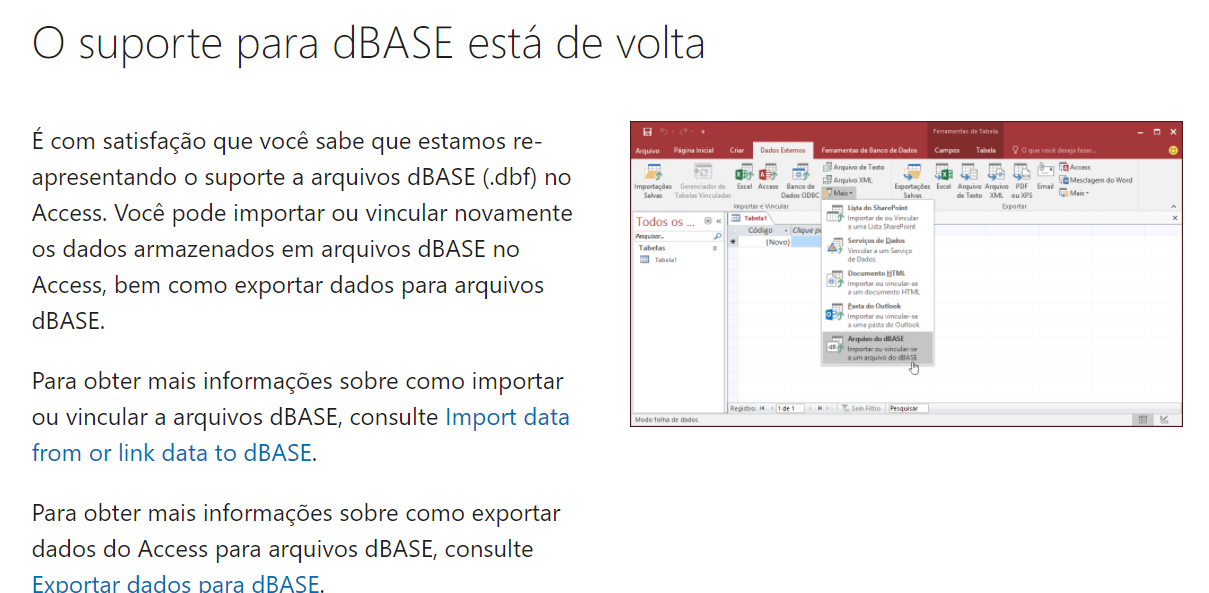 Conforme diz o anúncio, o Access permite VINCULAR o DBF.