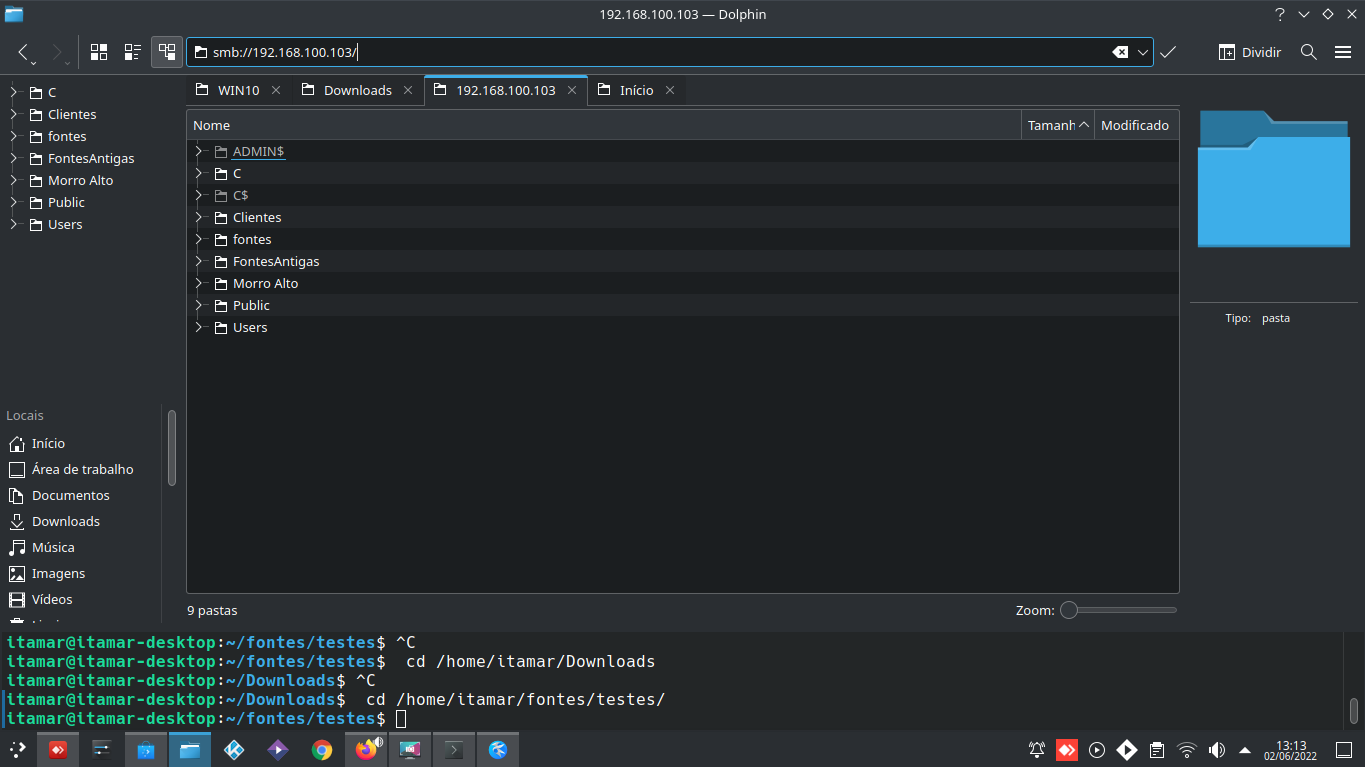 Acessando as pastas do notebook com windows 10 via SMB(SAMBA).