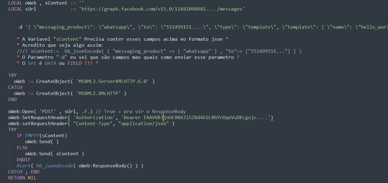 cjson  =hb_jsonEncode( { "messageData" => { "to" => AllTrim( rA_TELENVIO ) , "text" => rA_MSGENVIO } } )