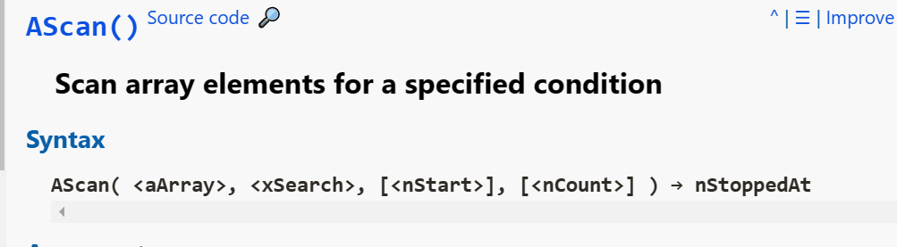 Nota: apesar de eu ter testado hb_AScan(), AScan() tem o mesmo resultado.