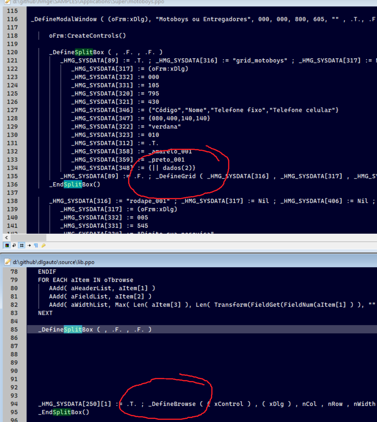 Vi no SUPER, que o grid está entre DEFINE SPLITBOX - END SPLITBOX