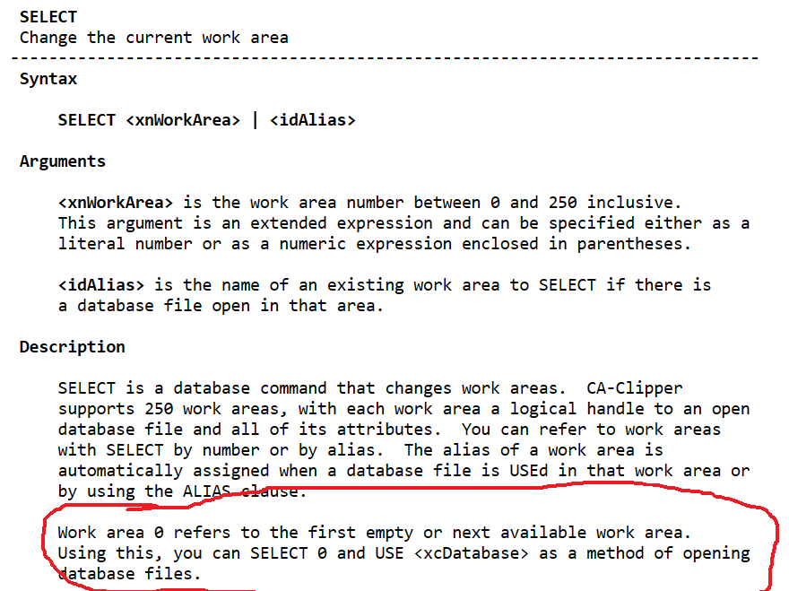 dbSelectArea( "0" )