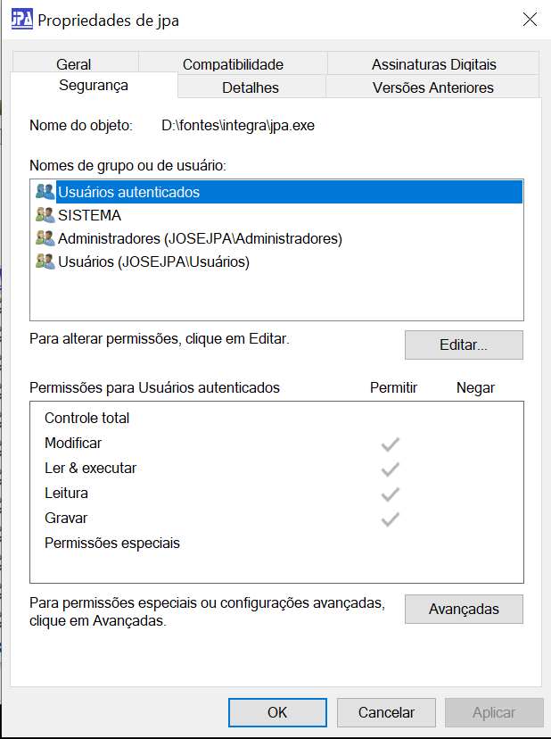 Exemplo: pra JPA.EXE., criar JPA.EXE.manifest