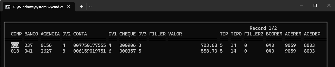 CONTA+DADOS->DV1+DADOS->CHEQUE+DADOS->DV3+DADOS->;