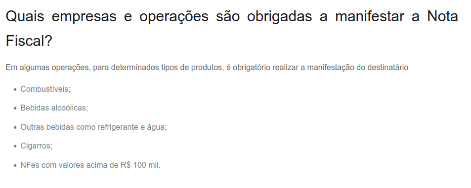 Pra poder baixar, precisa manifestar: indicar se a operação aconteceu ou não.