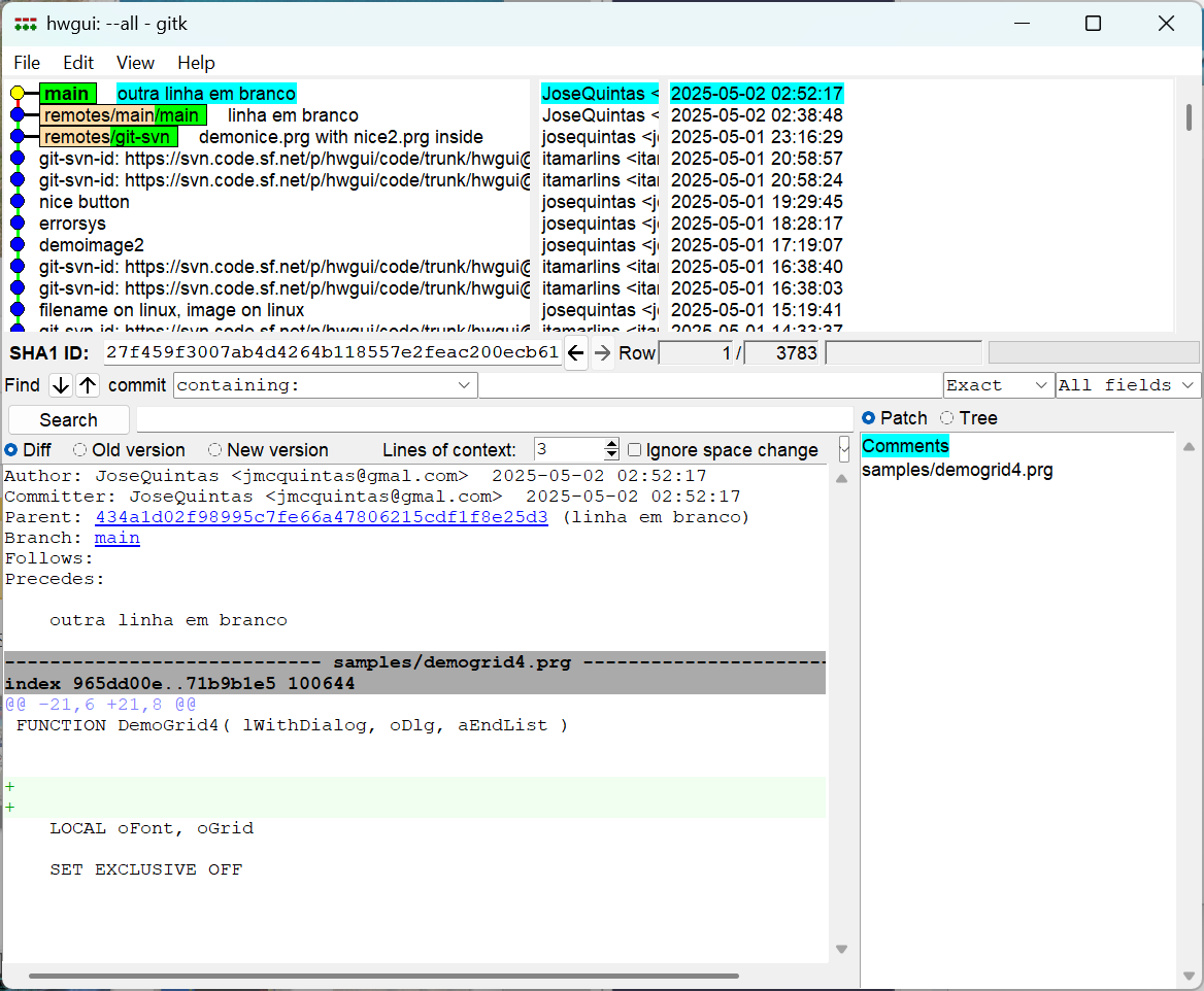 Volto na linha do source-forge, e acrescento as alterações na linha de tempo dele.