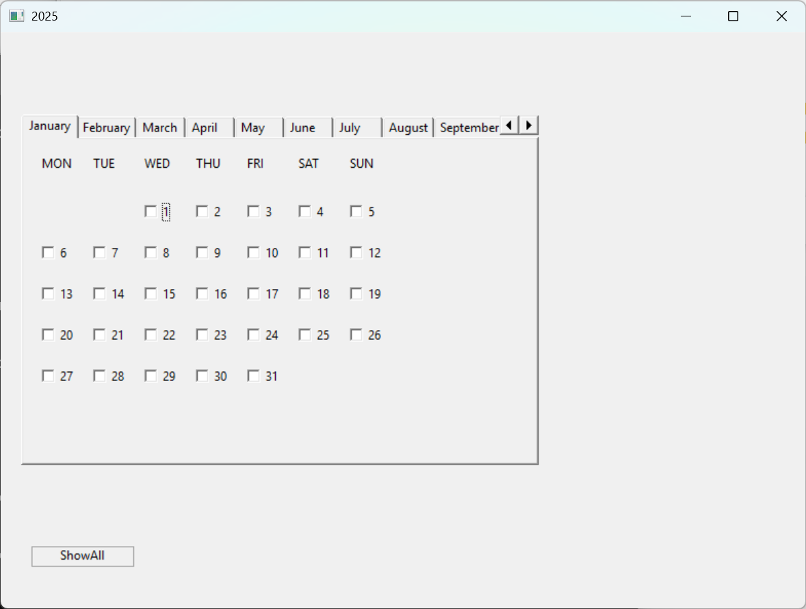 LOCAL xTab, nCont, oButton[ 12, 31 ], aItem, dDate, nYear := 2025, xDlg