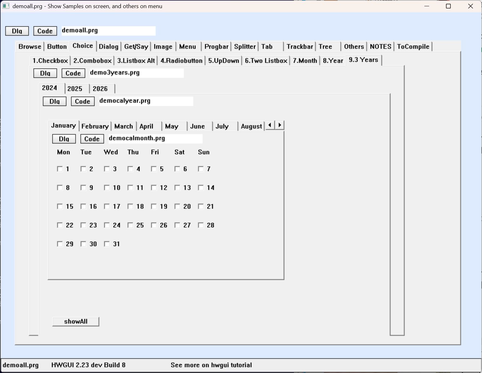 E democalmonth.prg pode ser compilado sozinho e funcionar sozinho só pra um mês, sem a variável de democalyear.prg.
