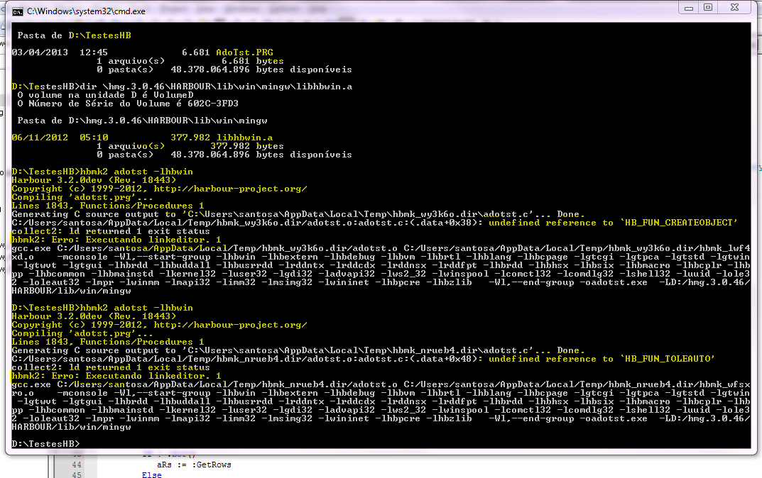 Aliás, estou tentando compilar isso com o Harbour (HBMk2.Exe) que veio com a HMG 3.0.46: