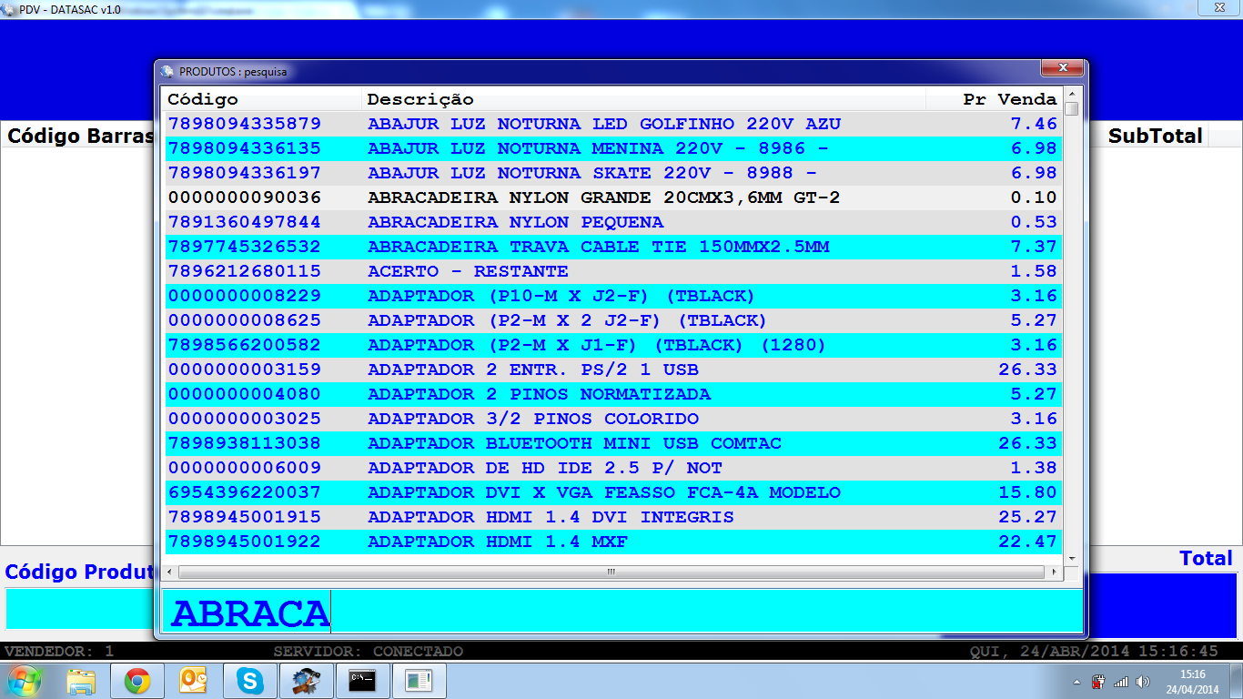 FIELDS {'pro->codbarra','pro->nompro_','pro->prvendal_'};