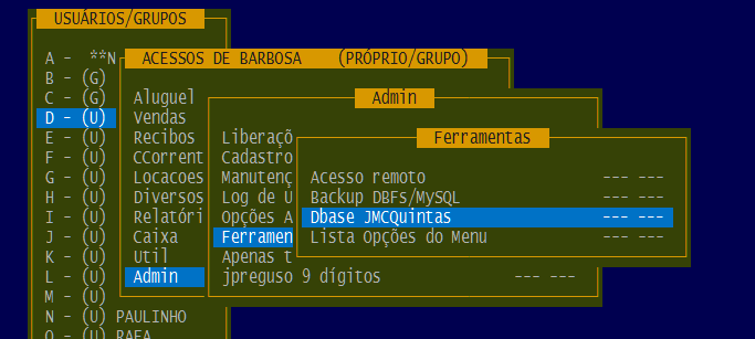 - MudaAcess() e SelecionaUsuarios() já fazem parte de configuração, e não deste menu