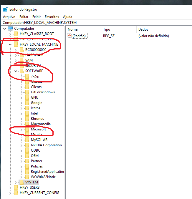 E justo dentro de Software Microsoft...apesar de parecer, não é um registro do windows, está na chave do registro WINDOWS NT