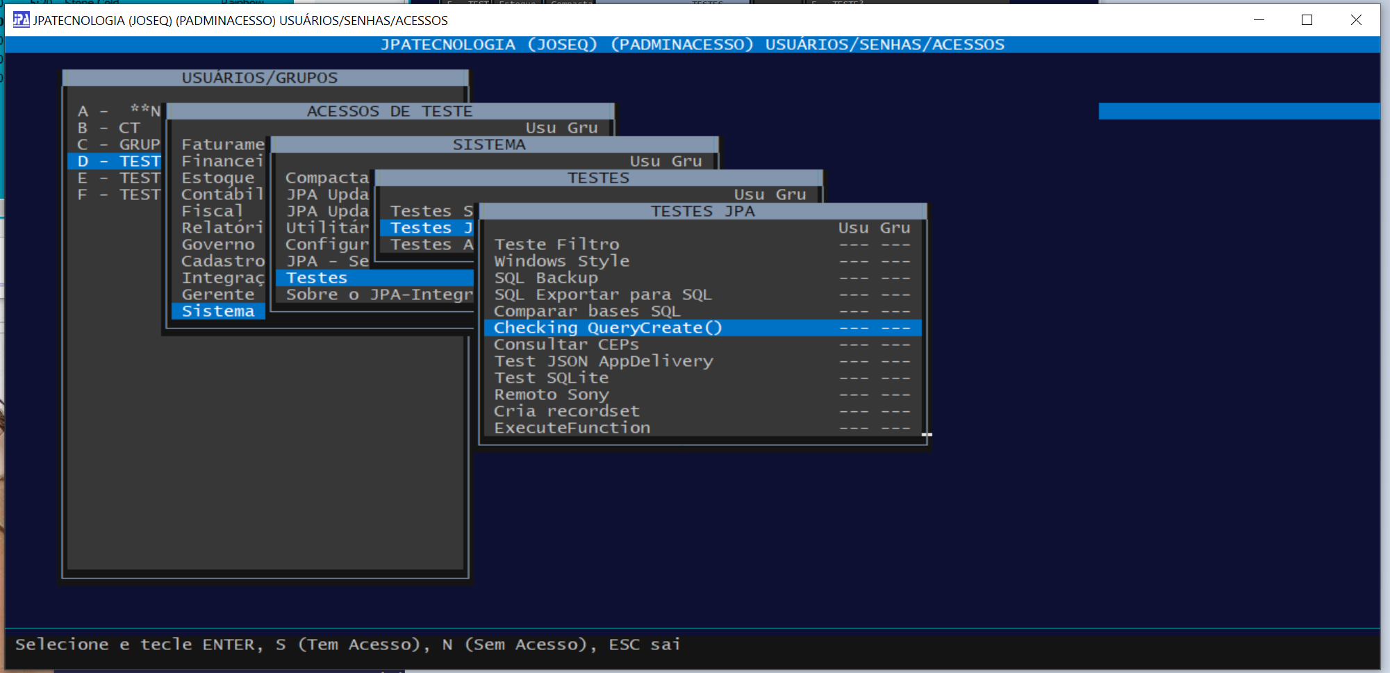 Mensagem( "Selecione e tecle ENTER, <S> (Tem Acesso), <N> (Sem Acesso), <ESC> sai" )