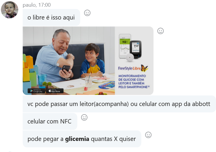 -ta mas como diabético preciso perguntar, como descobre a glicose dos seus filhos é online ou tem que escrever cada vez que mede?