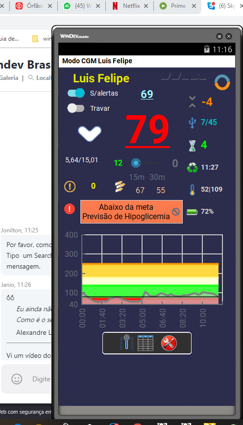 Com esses dispositivos, ele desenvolveu app's que ficam instalados em seu RELOGIO (com android) ou CELULAR, e ele o PAULO (pai das crianças) recebe em TEMPO REAL, em qualquer lugar que esteja, a glicemia naquele exato momento de cada um de seus filhos. Dessa forma ele sabe até a hora que as crianças estão há muito tempo sem comer. Histórico, glicemia atual, projeção de quanto vai estar, etc, etc, etc, etc. Recentemente ele implementou no app RECURSOS DE VOZ por causa de uma deficiente visual.