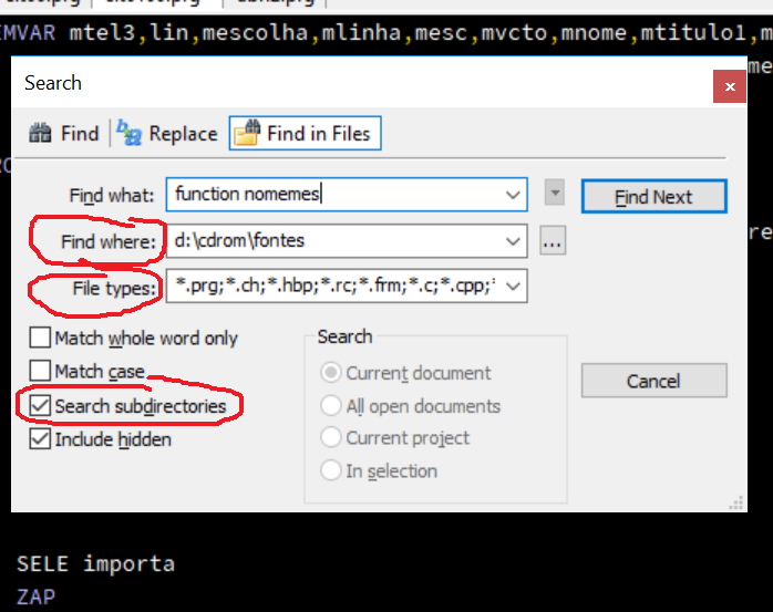 Alguns editores só permitem pesquisar em fontes do projeto.