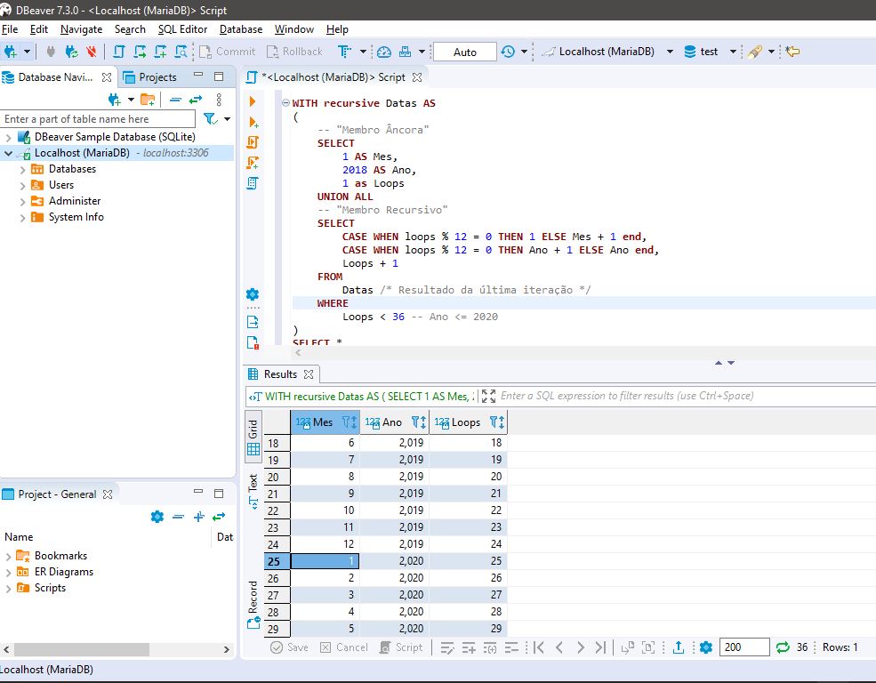 Usei o exemplo do Alexandre, tomei uma surra pra entender mas consegui fazer funcionar, agora o problema é para um período maior por anoJoséQuintas escreveu:Usou recursive e CTE ao mesmo tempo, ou isso já tinha antes?