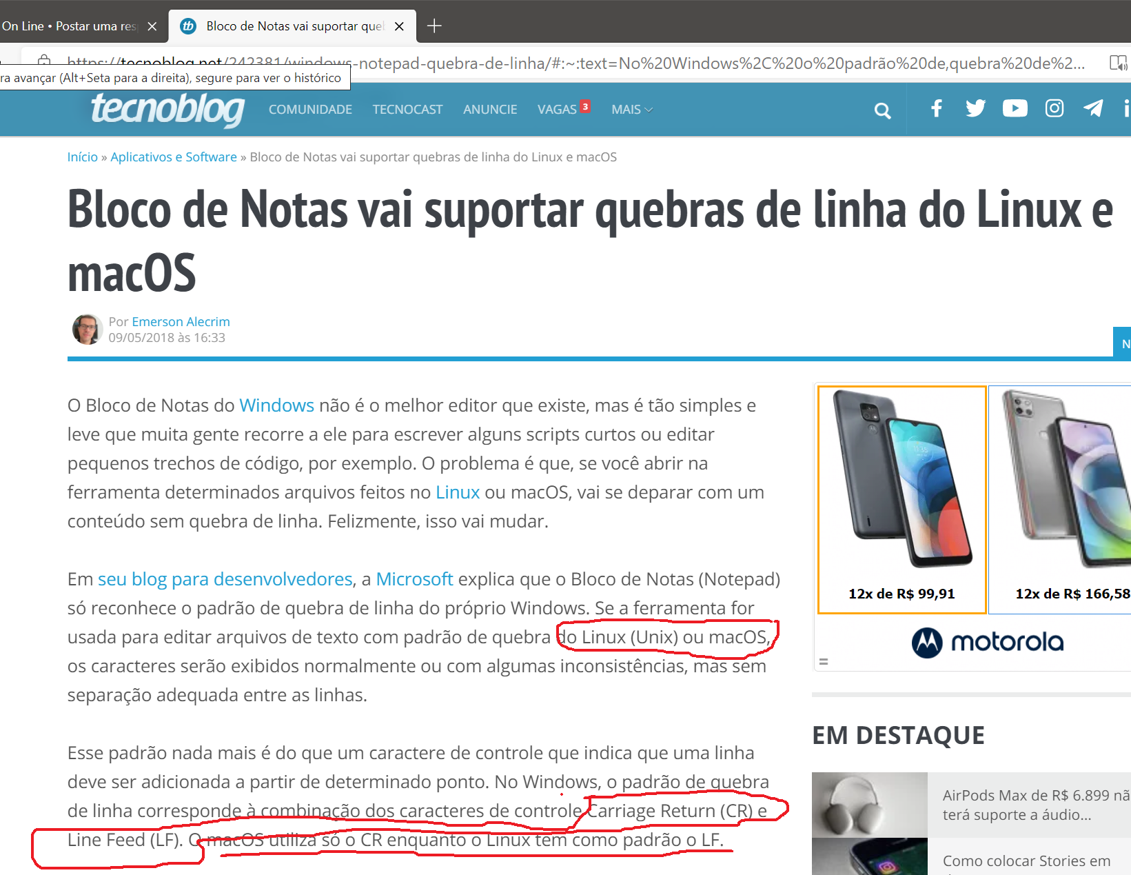 On the Mac Classic (Mac systems using any system prior to Mac OS X), line-endings are terminated with a single carriage return (\r or CR). (Mac OS X uses the UNIX convention.)