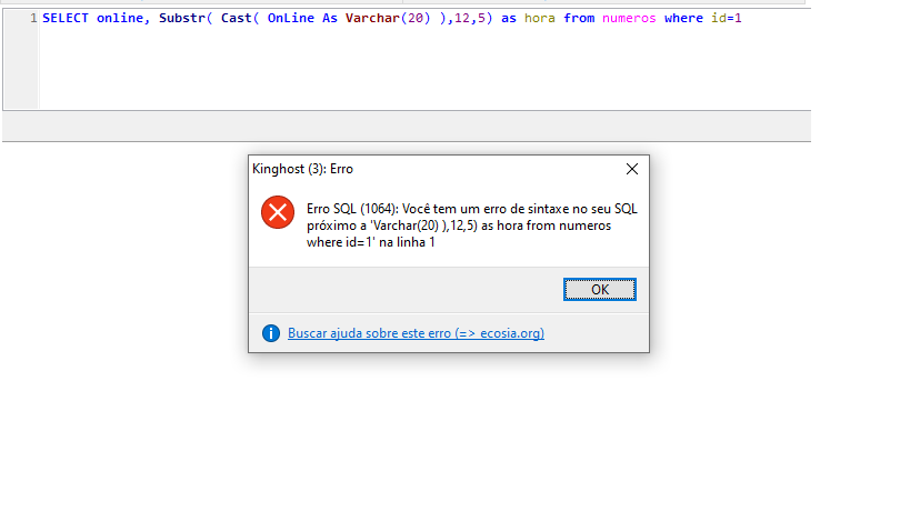 Eu nunca sei que banco você está usando quando posta os erros. Pelo que percebi de outros tópicos, você usa MariaDB 10 e tem um provedor de internet onde é usado MySQL 5.6. Como já foi dito antes, se pretende usar MySQL 5.6 no provedor, esqueça o MariaDB. Se pretende usar MariaDB, contrate MariaDB no teu provedor. Ou contrate MySQL 8 no teu provedor e use ele também no lugar do MariaDB. Não dá pra usar funcionalidades novas do MySQL 8 ou MariaDB 10 no MySQL 5.6...cjp escreveu:Minha dúvida é: esta é a versão do MariaDB ou do MySQL? Porque o MariaDB aqui parecer ser o 10.4 (vide anexo).