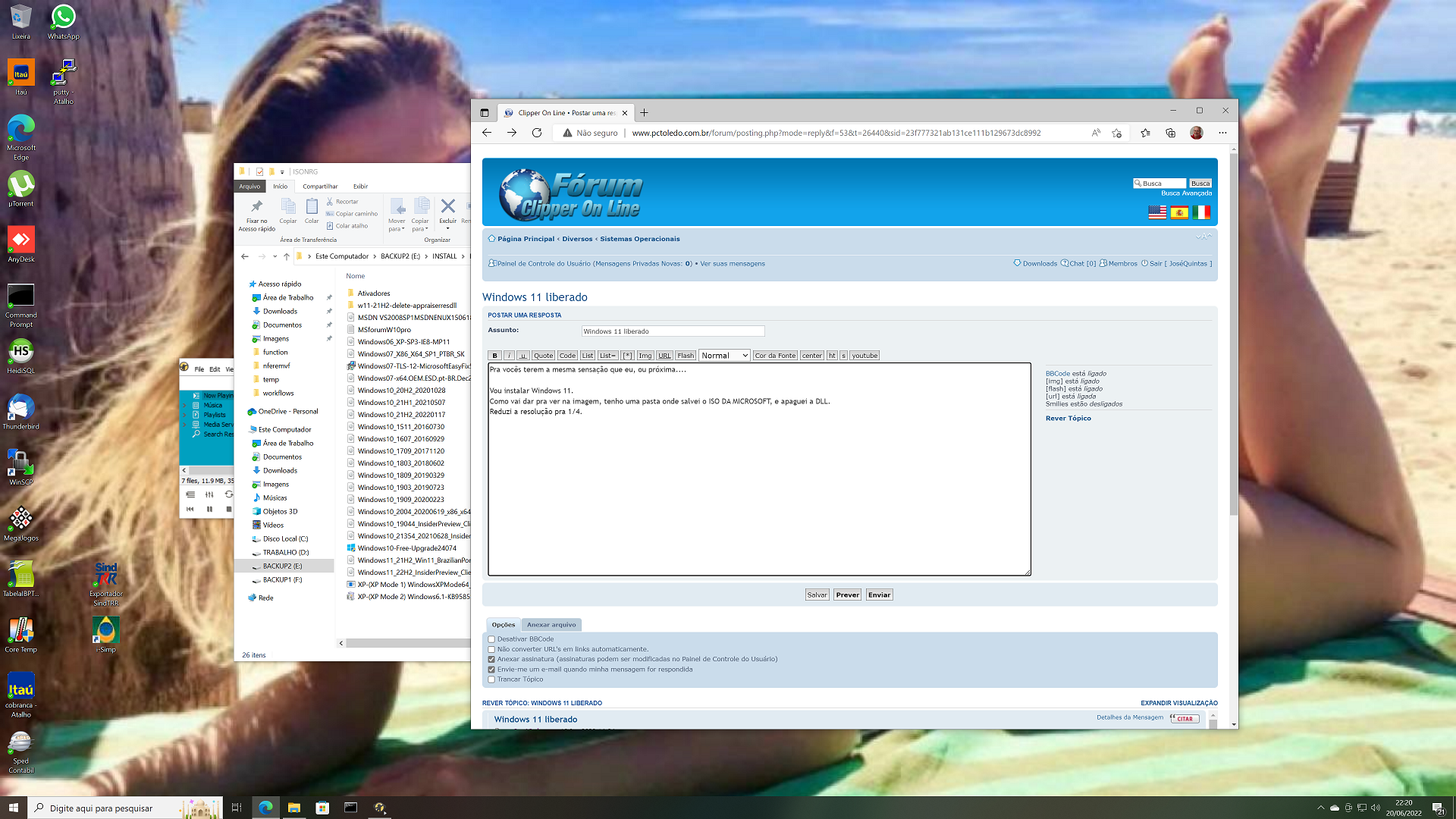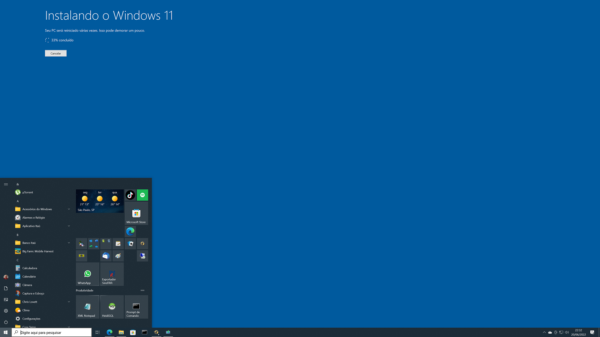 Nota: Instalei W11 executando direto do HD. Há muito tempo não uso boot externo.