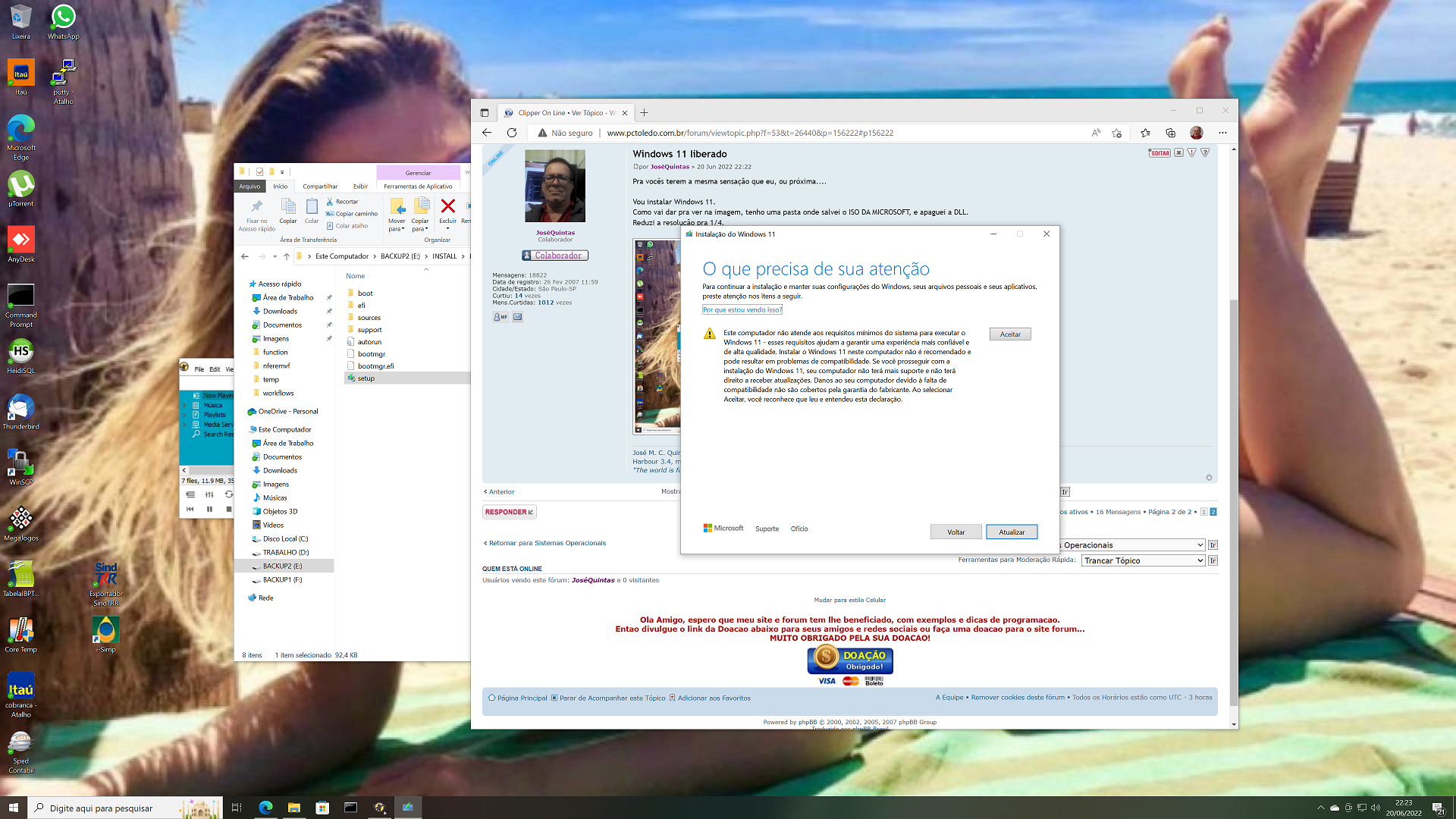 Testei instalar a próxima versão do W11, tem o mesmo teste de TPM, mesmo no W11 já instalado.